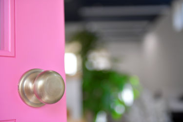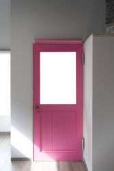 外からも見えるピンク色のドアは色にもこだわって設置しました。遊び心をくすぐるデザインをお楽しみください。